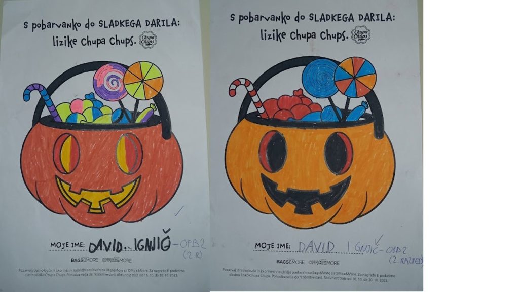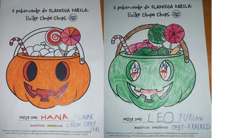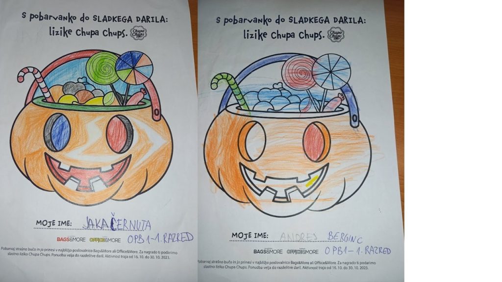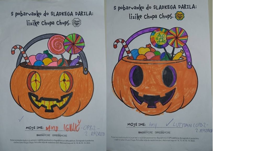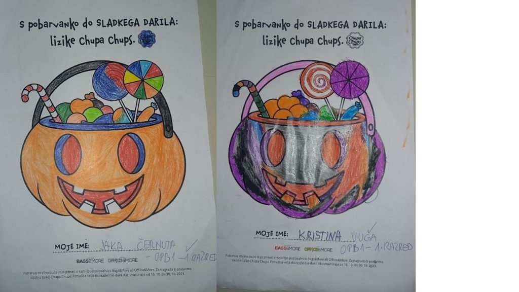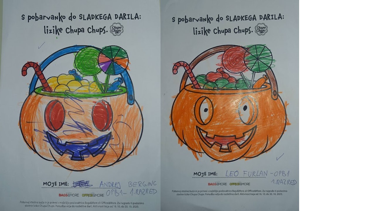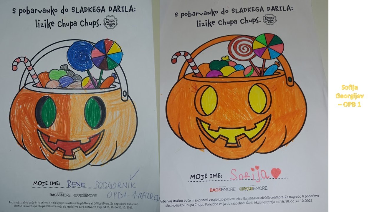 “Učenci v OPB na POŠ Miren (OPB 1, OPB 2 in OPB 3) so za natečaj “Najbolj strašne buče” po predlogi po svoji domišljiji barvali buče ter nastali so izdelki na sliki.