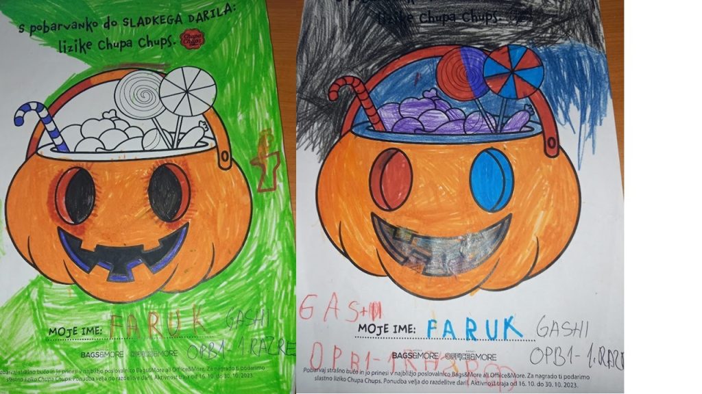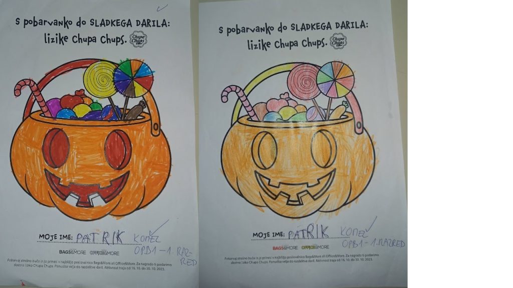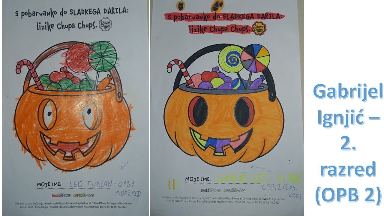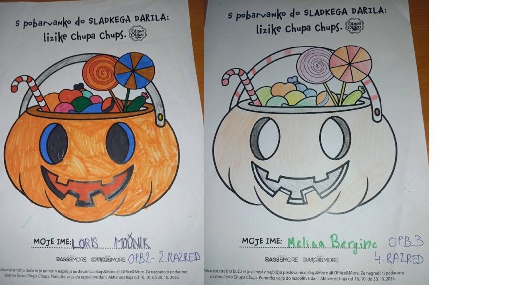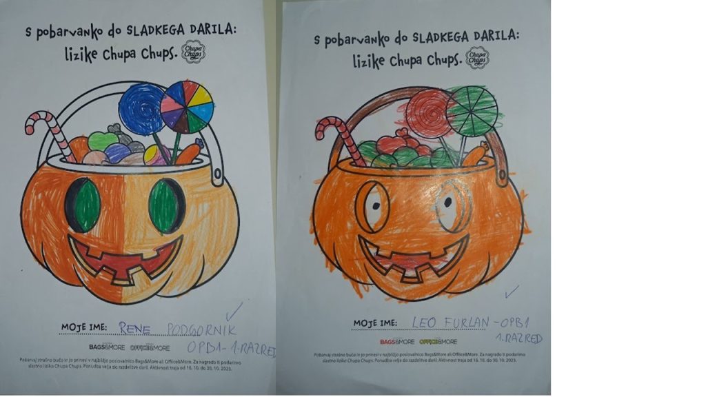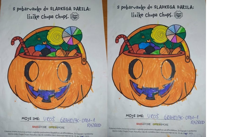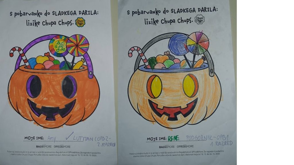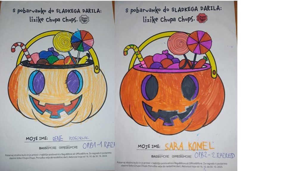“Učenci v OPB na POŠ Miren (OPB 1, OPB 2 in OPB 3) so za natečaj “Najbolj strašne buče” po predlogi po svoji domišljiji barvali buče ter nastali so izdelki na sliki.