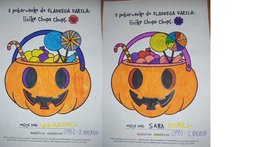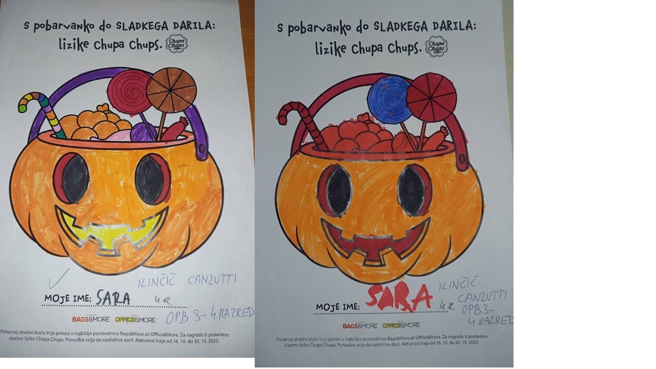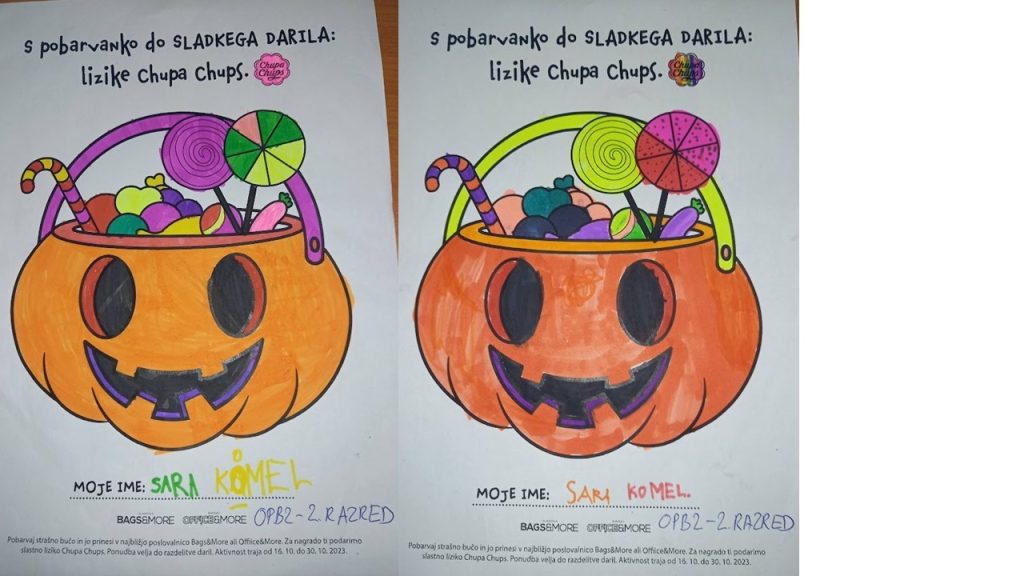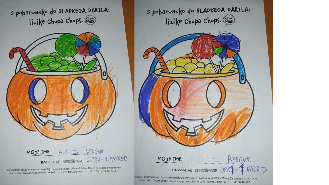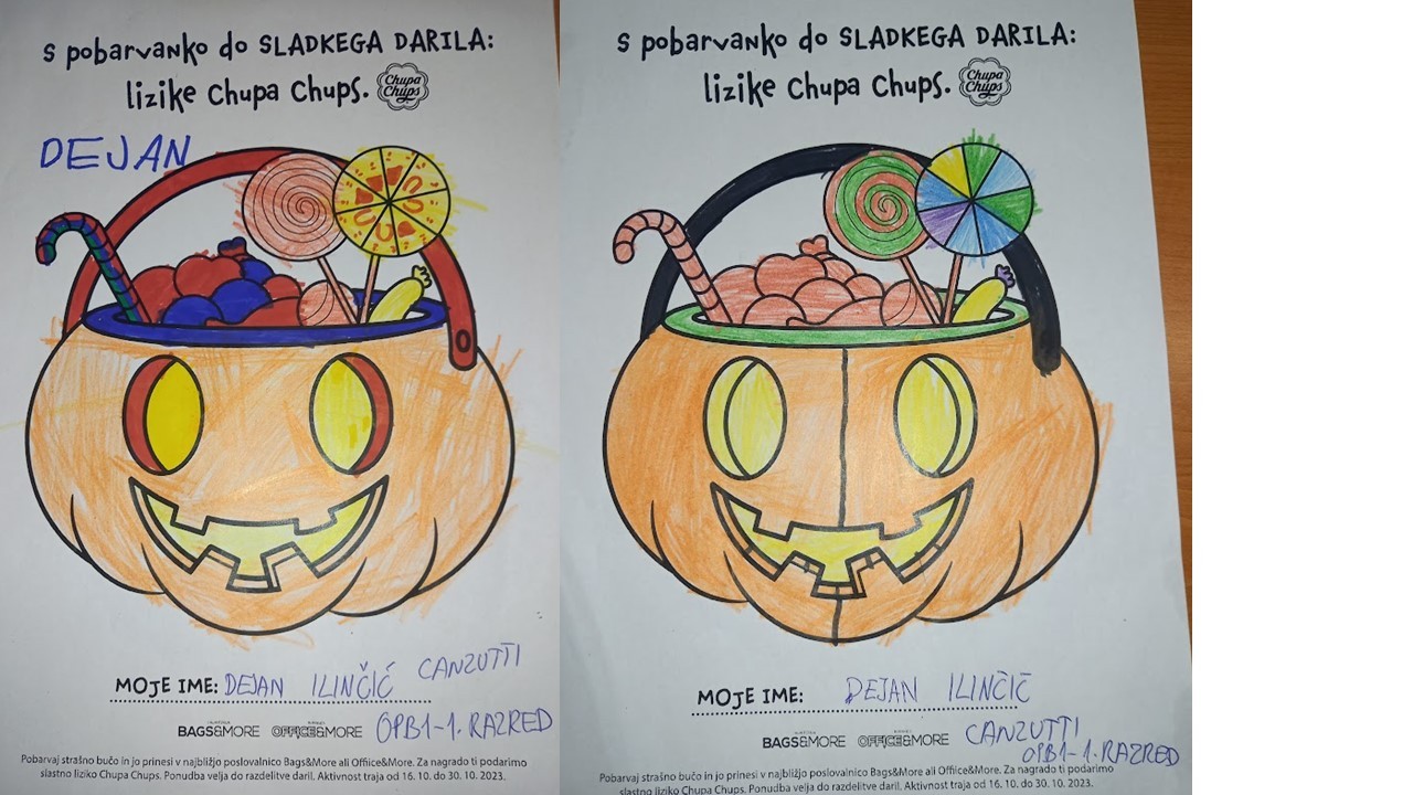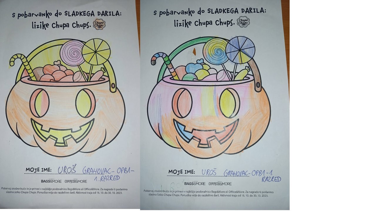 “Učenci v OPB na POŠ Miren (OPB 1, OPB 2 in OPB 3) so za natečaj “Najbolj strašne buče” po predlogi po svoji domišljiji barvali buče ter nastali so izdelki na sliki.